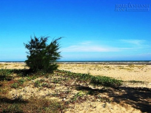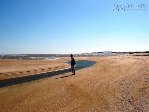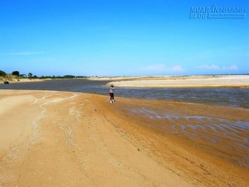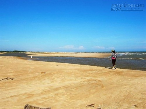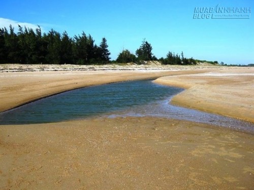 Đây là một trong những bãi biển hiếm hoi ở Việt Nam vừa có nước ngọt và nước mặn. Điểm đặc biệt của bãi biển này là có hai đường nước xanh biếc song song nối sông và biển bị ngăn cách bởi triền cát trắng xóa.
