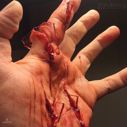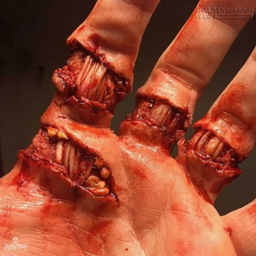Vết thương trên ngón tay cũng được hóa trang một cách hoàn hảo.