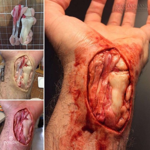 Vết thương giả nhưng khiến người xem phải đau xót và rùng mình.