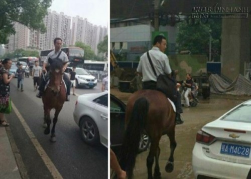 Cưỡi ngựa đi làm để tránh kẹt xe - Ảnh chụp màn hình trang tin Shanghaiist