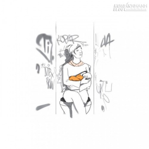 Để dỗ dành cho đứa bé, bạn phải buộc mình chui vào một xó nào đó để cho nó bú, mặc kệ xung quanh bẩn, mất cảnh quang như thế nào, thậm chí là ngay trong tolet