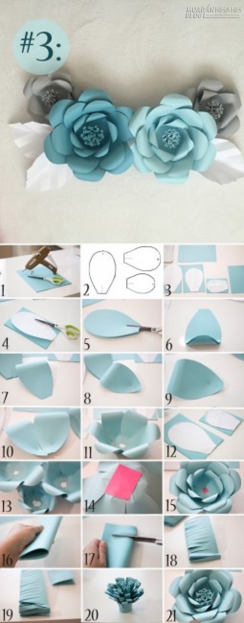 Những bông hoa hồng với 3 lớp cánh lớn nhỏ khác nhau mang màu sắc nhã nhặn, hài hòa tạo cảm giác sang trọng. Mẫu hoa giấy này không chỉ thích hợp để trang trí tiệc tùng mà bạn còn có thể linh động áp dụng vào trang trí phòng riêng hay đặt lên gói quà tặng bạn bè, người thân cũng rất đẹp mắt đó!