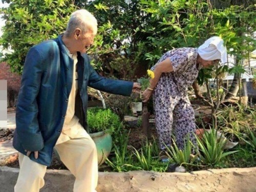 Giữa cơn bão đổ bộ về khoe quà, khoe hoa chồng tặng, bạn trai tặng thì bức ảnh của cụ ông tặng hoa cụ bà khiến dân mạng thích thú và chia sẻ rộng rãi. Cụ ông và cụ bà đều đã già cả, làm bạn với mảnh vườn nhưng nhìn vẻ mặt của họ, đủ biết rằng họ đã có một khoảng thời gian dài chung sống hạnh phúc.