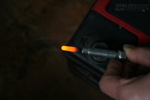 Bugi sấy còn sống sẽ bị nung đỏ sau khi được thử bằng bình ắc quy nhưng nếu giữ quá lâu nó có thể bị cháy
