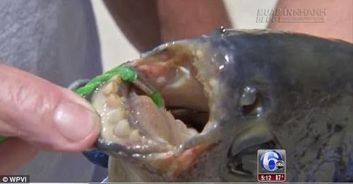 Con cá Pacu có hàm răng giống người bắt được ở New Jerrsey. Ảnh: WPVI |