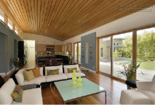Ngoài ra, những gian phòng được ốp gỗ đã sử dụng qua một thời gian khá dài, bạn nên tăng sáng và làm mới trần gỗ bằng cách dùng sơn để sơn một lớp mỏng lên toàn bộ trần với màu tường hay những màu nhẹ nhàng khác như kem, be, xám nhạt… Màu sơn sẽ giúp giảm bớt sự cũ kỹ của gỗ đã sử dụng trong thời gian dài, vừa giúp ngôi nhà như được thay bộ cánh mới, nhưng vẫn giữ được nét thanh lịch cũng như không khí mát mẻ khi bước vào không gian