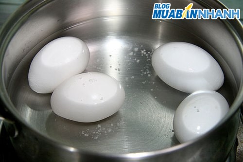 Trong khi luộc trứng nên cho ít muối vào nước, trừng chín vớt ra cho vào nước lã ngâm một lúc, làm như vậy vỏ trứng rất dễ bóc