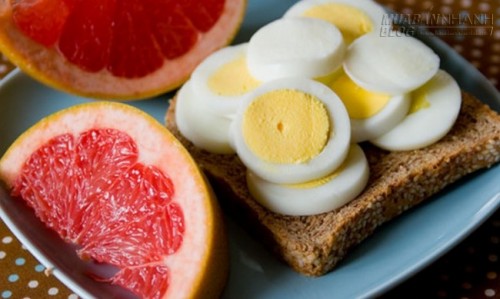 Bữa sáng: 2 quả trứng luộc, nữa trái bưởi.