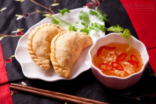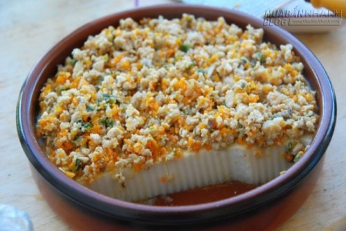 Khi dọn món, bạn chỉ việc phết lên ít mỡ hành và ăn kèm nước mắm chua ngọt.