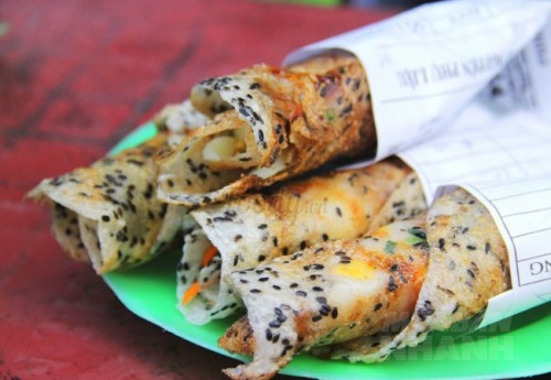 - Nếu muốn ăn vị béo hơn bạn có thể dàn mỏng một miếng phô mai, rồi thêm tép khô, hành lá, tương ớt sa tế, trứng dàn đều và nướng bánh đến khi chín.