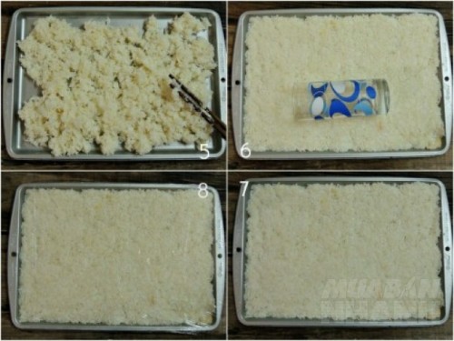 Khi cơm đã chín thì trải đều cơm ra một cái khay, để cho đến khi cơm nguội thì dùng giấy bóng kín bọc lại và cho vào tủ lạnh. Cơm sẽ khô nhanh hơn.