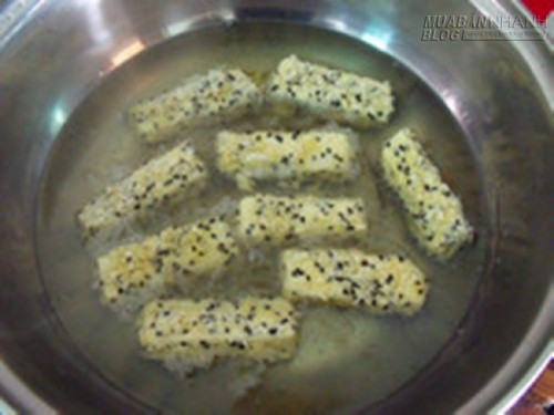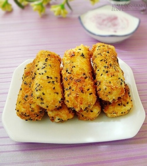 Bước 4: Cho vào chảo ngập dầu chiên vàng. Chấm cùng sốt mayonaise. Để món ăn ngon hơn, bạn có thể thay sốt mayonaise bằng sữa chua.