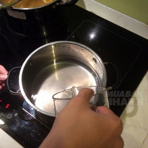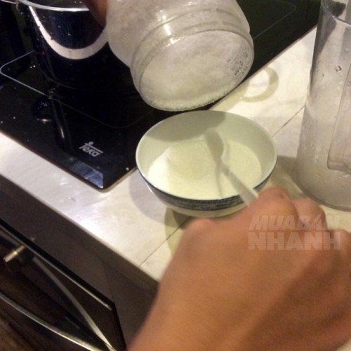 Trong lúc chờ nước nóng, chuẩn bị 3/4 chén đường. Mình thường bắt đầu như vậy, nếu cần ngọt hơn thì cho thêm lúc sau.