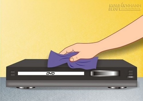Lau sạch bên ngoài của đầu DVD bằng một miếng vải sợi khô để loại bỏ bụi từ bề mặt của thiết bị. Hãy chú ý đến các khu vực xung quanh các lỗ thông hơi cũng như các cổng kết nối cáp audio và âm thanh ở phía sau.