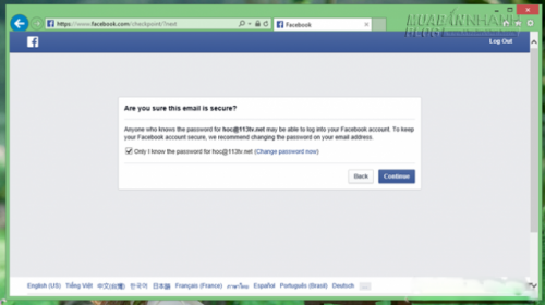 Ở trang kế tiếp, Facebook sẽ hỏi bạn lại lần nữa về tình trạng của email có an toàn hay không, nếu chắc chắn, hãy đánh dấu vào tùy chọn Only I know the password for… và nhấp Continue.