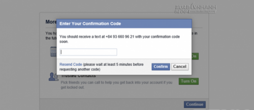 Một mã số bí mật sẽ được gửi đến số điện thoại mà bạn vừa nhập, hãy sao chép và dán vào khung trống, sau đó nhấp Confirm > Close để xác nhận.