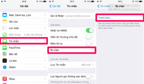 - Đối với iOS: Mọi người cũng vào Cài đặt > Tin Nhắn > Bị chặn, rồi cũng thêm số điện thoại mà bạn muốn chặn.