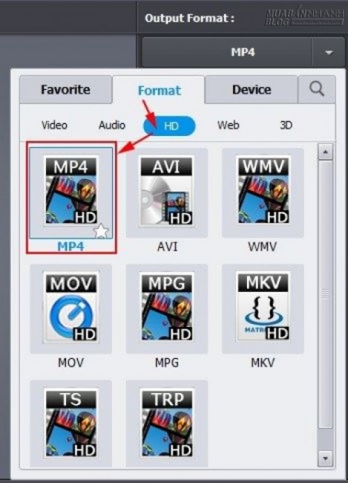 Tiếp theo, nhấp vào Output format và lựa chọn định dạng đầu ra. Thông thường đầu ra sẽ có rất nhiều các định dạng khác nhau, nhưng bạn cần chọn định dạng phù hợp nhất và được TV Samsung hỗ trợ tốt nhất. Đó chính là định dạng MP4. Ngoài ra, bạn có thể thiết lập một vài thông số khác thông qua phần cài đặt Settings nếu muốn.