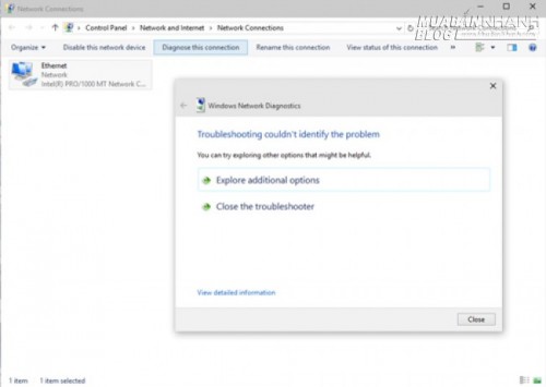 Cách đơn giản nhất để xử lý là nhấp phải chuột vào biểu tượng mạng ở khay hệ thống và chọn Open Network and Sharing Center > Change adapter settings, chọn vào kết nối mà bạn đang sử dụng (Ethernet hoặc Wi-Fi), sau đó kích vào mục Diagnose this connection ở thanh menu bên trên, chờ nó xử lý rồi nhấn Apply để hoàn tất.