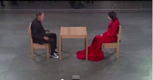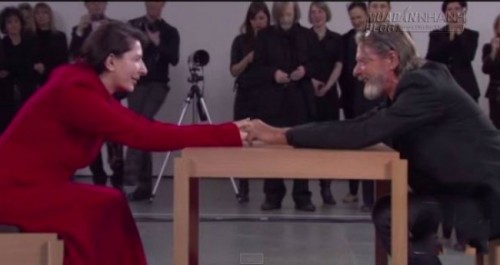 Sau hơn 30 năm Marina đã mở một cuộc triển lãm. Marina sẽ đối mặt với rất nhiều người nhưng cô không hề có bất cứ thái độ gì chỉ ngồi yên lặng. Khi một người đàn ông “lạ mặt” xuất hiện, Marina nhanh chóng thay đổi những sắc thái trên khuôn mặt: từ nụ cười hạnh phúc cho đến giọt nước mắt vỡ òa bao lâu nay. Đó chính là người yêu của cô 30 năm về trước. Cả hai người đều không kìm được cảm xúc khi gặp lại đối phương. Mọi người đều bất ngờ về sự gặp mặt của đôi tình nhân này.