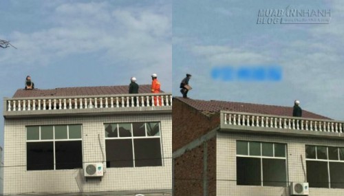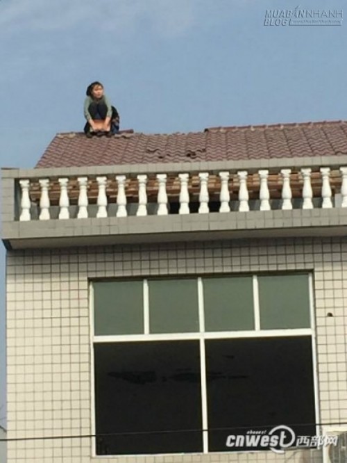 Ông chồng và người nhà không có cách gì ngoài việc đứng nhìn bởi vì khi họ đến gần, cô ta sẽ ném ngói xuống. Bố mẹ chồng người phụ nữ này đã quá sợ hãi và bỏ về nhà của họ.