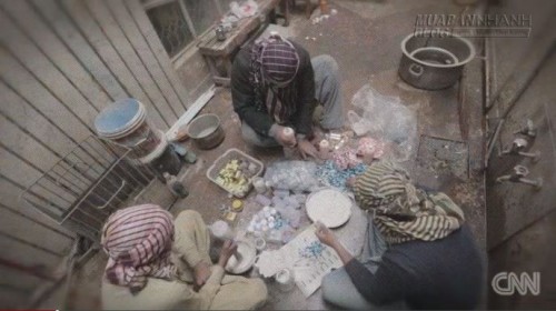 Mới đây, một đoạn video do CNN công bố đã ghi lại cảnh các công nhân tại xưởng làm thuốc bên trong một con hẻm gần khu chợ dược phẩm, đang miệt mài nghiền những mảnh vữa tường cũ thành bột - một trong những thành phần chính của thuốc giả.
