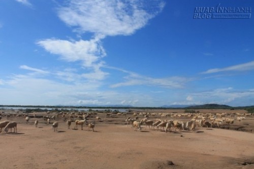 | Giữa không gian tĩnh lặng, bốn bề là núi non, cánh đồng hoang với những thảm thực vật đặc trưng cùa vùng nắng, tiếng cừu kêu “bê bê” gọi nhau khi gặm cỏ, tiếng la ới của người chăn khiến khung cảnh thật đỗi yên bình. |