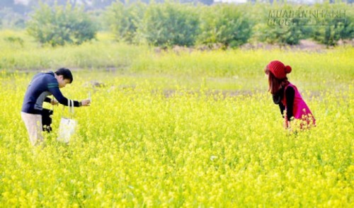 Đến hẹn lại lên, thời điểm cuối tháng 11, đầu tháng 12 âm lịch khi tiết trời miền Bắc bắt đầu chuyển rét thì cũng là lúc những cánh đồng hoa cải bắt đầu nở rộ hoa. Những cánh đồng hoa cải ở ngoài thành Hà Nội như Trâu Quỳ (Gia Lâm), Phù Đổng (Bắc Ninh), hai ven bờ sông Đuống (Thuận Thành, Bắc Ninh) đã rực rỡ màu vàng của hoa cải, trải dài ươm màu rực rỡ.