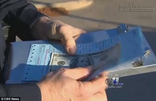 Giấy phạt kèm theo tờ tiền giúp đỡ. (Ảnh: CBS News)
