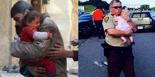 Trong nhiều tình huống nguy cấp, cảnh sát luôn là người bảo vệ cho các em nhỏ. Ảnh: internet (MH)