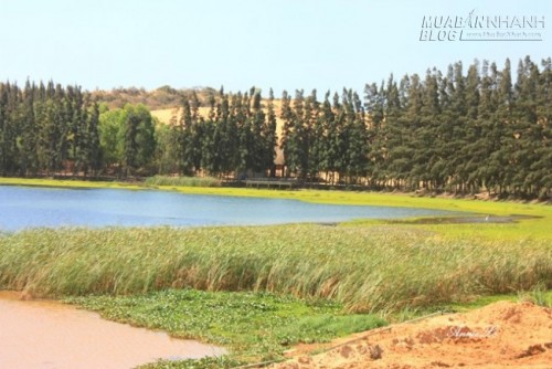 Bàu Ông có diện tích nhỏ hơn và cũng cạn hơn Bàu Bà, xung quanh là những hàng dương (phi lao) xanh mát.