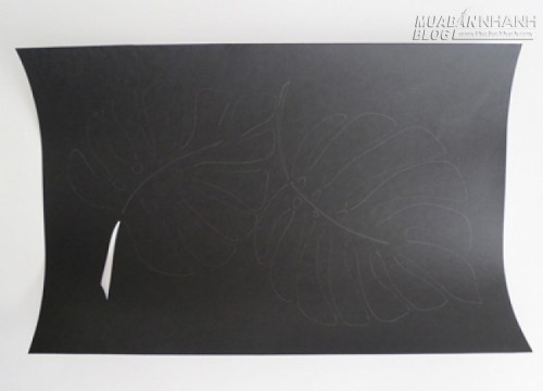 | Bước 1: - Đầu tiên, bạn in hình chiếc lá trên tấm giấy màu đen. Bạn có thể tùy chọn hình ảnh thích hợp để in. |