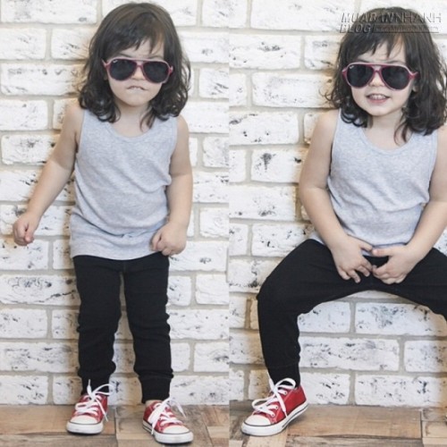 Thời trang của bé toát lên vẻ năng động, hoạt bát, không khiến trẻ trông già hơn nhiều so với tuổi - điều mà các ông bố bà mẹ hay mắc phải khi cố tình tạo sự sành điệu cho con.