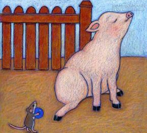 Chuột quay sang nói với anh Heo với vẻ lo lắng: "Anh Heo ơi, trong nhà ta có một cái bẫy Chuột". Anh Heo tỏ ra thông cảm: "Tôi rất lấy làm tiếc, cậu em ạ! Tôi chẳng thể làm gì được, nhưng tôi sẽ cầu nguyện cho chú".