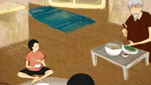Khi cả gia đình liếc nhìn về phía ông cụ, đôi khi thấy ông chảy nước mắt khi phải ngồi một mình. Vậy mà, mỗi khi ông đánh rơi muỗng nĩa hay đánh đổ thức ăn, hai vợ chồng vẫn còn la rầy ông.