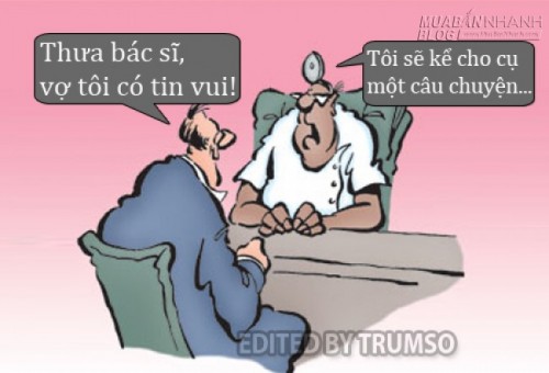 - Thưa bác sĩ, vợ tôi có tin vui!