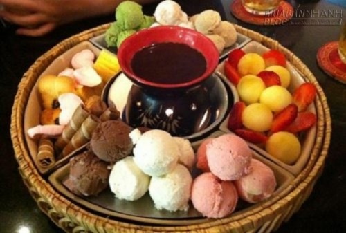Tương tự như lẩu trà sữa, lẩu kem gồm nhiều loại kem đủ hương vị với những màu sắc tươi tắn, bắt mắt và một nồi nhỏ sô-cô-la nguyên chất nấu chảy. Khi ăn, bạn chỉ việc tưới nước sốt sô-cô-la lên kem và thưởng thức từ từ. Món ăn vặt này thu hút giới trẻ Sài Gòn bởi màu sắc bắt mắt của những viên kem mát lạnh cùng với màu nâu đầy lôi cuốn của sốt sô-cô-la.