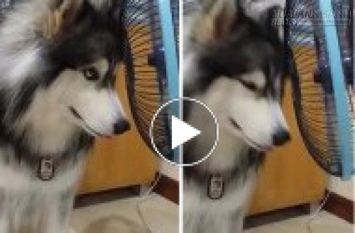 Đang hóng gió bên quạt thì bị mẹ cản, chú chó làm ra vẻ mặt buồn rười rượi.