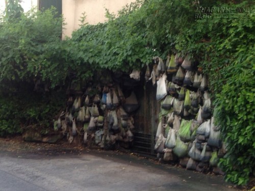 Hàng trăm chiếc túi nilon nước tiểu chó được treo khắp hàng rào ngôi nhà