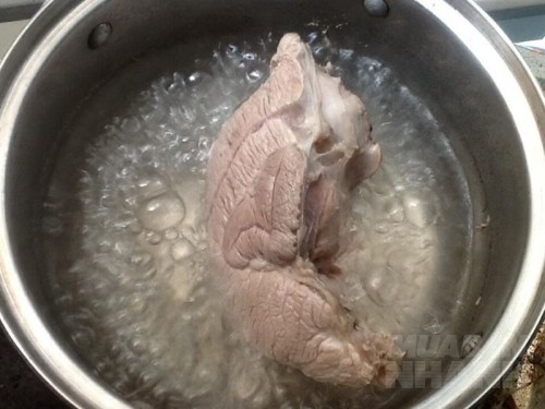 Sau đó đun sôi một nồi nước khác và bỏ miếng thịt vào luộc cho đến khi chín.