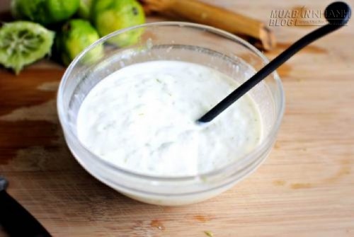 - Cho nước cốt chanh tươi vào bát nước cốt dừa vừa làm, rồi dùng thìa khuấy đều, để được hỗn hợp sền sệt như kem là được.