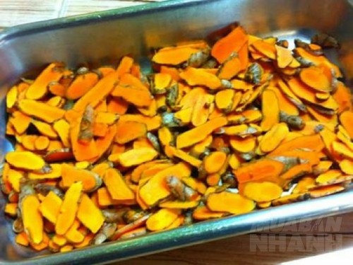 - Tiếp đó, bạn dùng dao thái nghệ thành các lát mỏng, rồi giải nghệ đem phơi nắng chừng 1 -2 tiếng.