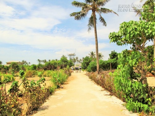 | Đường từ Bãi dừa tới bến tàu dài chừng 1,5km nhưng trên đường đi bạn có thể vừa vui đùa cùng nhóm bạn, vừa ghé vào thăm các hộ dân để thấy cuộc sống phong phú của họ. |