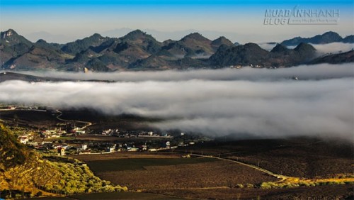 Nắng lên cao cũng là lúc biển mây dâng theo, tràn vào thung lũng, ôm ấp cả những nương cải trắng rồi băng qua bao đồi chè xanh ngút.
