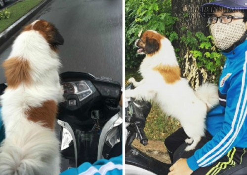 Điều đặc biệt, chú cún này rất thích được chở đi chơi bằng xe máy.