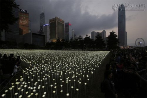 Light Rose Garden là một công trình nghệ thuật công cộng được trưng bày ởHồng Kông, mô phỏng một “biển” hoa hồng trắng tỏa sáng rực rỡ vào ban đêm. Được làm từ đèn LED, 25.000 bông hồng này thật sự là một địa điểm lí tưởng và ý nghĩa dành cho các cặp đôi nhân ngày Lễ tình nhân năm nay.