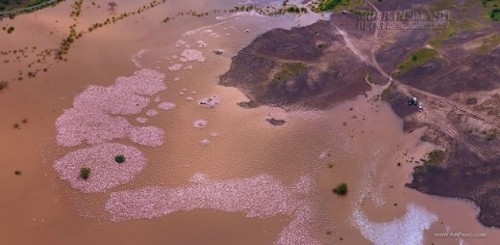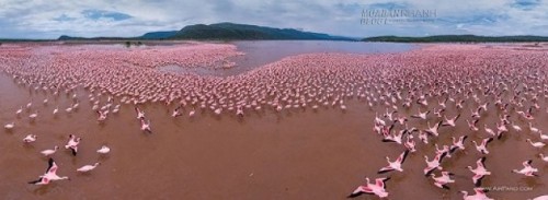 Những chú hồng hạc lẫn vào nước hồ hồng nhạt tạo nên cảnh quan cực kì thích mắt.