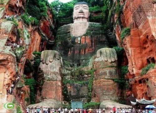 Tượng Lạc Sơn Đại Phật (Trung Quốc) được chạm khắc trực tiếp vào vách đá Thê Loan của núi Lăng Vân. Tượng có chiều cao 71 m mô tả Phật Di Lặc ở tư thế ngồi. Tượng do hòa thượng Hải Thông chỉ huy xây dựng từ khoảng năm 713 – 803 sau công nguyên với hy vọng rằng Phật có thể làm cho nước sông êm đềm, giúp tàu bè có thể đi lại dễ dàng hơn.
