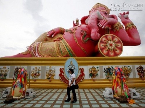 Tượng thần đầu voi Ganesha đặt tại đền Rattanaram ở Chachoengsao (Thái Lan). Tượng có màu hồng có cao 16m dài 22m. Voi thần Ganesha biểu tượng cho sự thoải mái, hạnh phúc và thịnh vượng.