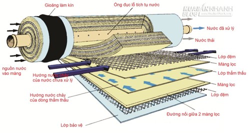 Bộ phận quan trọng nhất của máy lọc nước RO chính là màng thẩm thấu ngược RO. Qua màng RO, tất cả các ion kim loại nặng, vi khuẩn, amoni, asen, các chất hữu cơ nhỏ nhất ở cấp độ phân tử có kích thước từ 0.1 – 0.5 nanomet đều được lọc bỏ, nước lọc đầu ra đạt tiêu chuẩn nước tinh khiết. Các lõi lọc khác chỉ có cấp độ loc thấp hơn với vai trò tiền xử lý cho quy trình lọc và cung cấp các khoáng chất thiết yếu cũng như bổ sung thêm các thành phần cần thiết cho cơ thể.